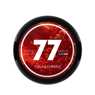77 Cola Cherry Slim Extra Strong har smak av cola och körsbär. 77 Cola Cherry har Nikotinstyrka 3 med 10 mg nikotinhalt per prilla, dessutom innehåller dosan 20 portiner.