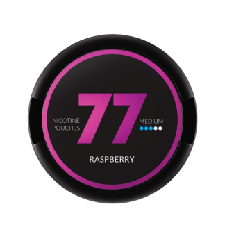 77 Raspberry Extra Strong All White snus har smak av hallon. 77 snus är nikotinpåsar utan tobak och kommer i många olika smaker.
