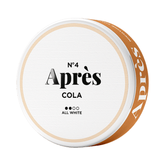 Apres Cola All White har smak av cola. Portionerna är normalstora och kommer i en normalstark nikotinstyrka.