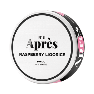 Apres Raspberry Liqorice har en smakkombination av hallon och lakrits. Portionerna är i formatet slim och kommer i nikotinstyrkan Normal.