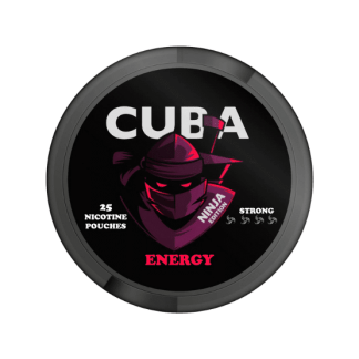 CUBA Ninja Energy Slim Strong All White Snus har smak av energidryck. Cuba är nikotinpåsar som kommer i många olika smaker och styrkor. De är kända för sina kraftfulla styrkor på 43 mg.