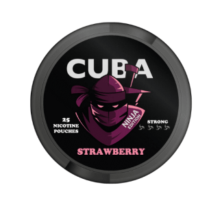 Cuba Strawberry Extra Stark All White Snus har smak av jordgubbar. Cuba är nikotinpåsar som kommer i många olika smaker och styrkor. De är kända för sina kraftfulla styrkor på 16,5 mg/Prilla.