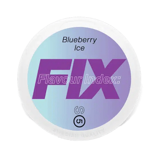 FIX Blueberry Ice #5 har smak av blåbär . Fix är nikotinpåsar utan tobak som kommer i flera olika smaker och styrkor. Smak och nikotin frisätts via påsens torra, perforerade yta.