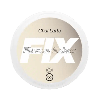 FIX Chai Latte #3 har smakkombination av kaffebönor och chai-kryddor, bland annat kanel och nejlika. Fix är nikotinpåsar utan tobak som kommer i flera olika smaker och styrkor. Smak och nikotin frisätts via påsens torra, perforerade yta.