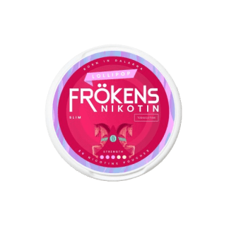 Frökens Nikotin Lollipop Slim har en sötma och en mild kryddighet och 6 mg nikotin per prilla. Frökens Nikotin Lollipop Slim har nikotinstyrka 3 med 6 mg nikotinhalt per prilla, dessutom innehåller dosan 20 portiner. Denna tobaksfria snus är presenterad i slim portion format, vilket innebär smalare och optimalt utformade prillor. Dessa prillor är ungefär hälften av storleken jämfört med traditionell snus i portionspåse. Varje prilla väger 0,55 gram, och varje dosa innehåller totalt 20 prillor. Med endast 3 mg nikotin per prilla och en fuktighet på normal nivå, erbjuder detta vita snus en mild styrka för dem som söker en lägre nikotinhalt.