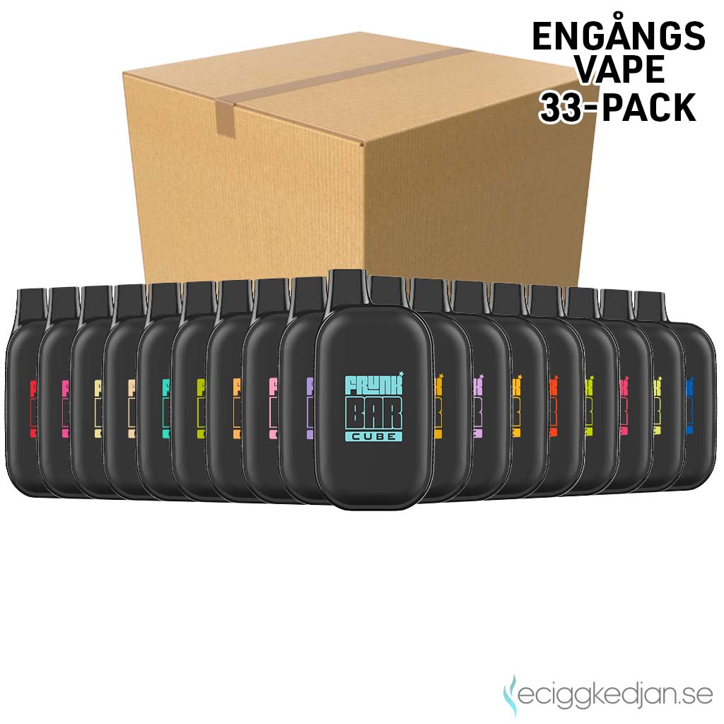 Komplett paket av alla 33 smaker av Frunk Bar Cube ZERO Mesh. Perfekt för introduktion av denna produkt, eller om du vill fylla på med alla. Paketet innehåller 33st enheter.
