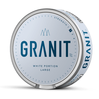 Granit Vit Portionssnus har en ren tobakssmak med inslag av bergamott, kryddor och salt. Granit Vit Portionssnus har nikotinstyrka 2 med 8 mg nikotinhalt per prilla, vilket blir en nikotinhalt på 1%. Varje prilla väger 0,80 gram och en dosa innehåller 22 stycken prillor.