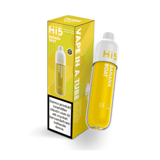 Hi5 Banana Boat har smak av Banan. HI5 har lång erfarenhet av att tillverka vapeprodukter och denna engångsvape är en del av deras breda sortiment. Med en enkel design är Hi5 Banana Boat lätt att använda och det kraftfulla 500 mAh-batteriet ger upp till 600 puffar. Med en tank på 2 ml e-juice och en nikotinstyrka på 20 mg nikotin per ml e-juice får du en intensiv smak och nikotineffekt.