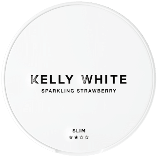Kelly White Sparkling Strawberry Slim har smak av jordgubbar och champagne med nikotinstyrka på 8 mg/g.