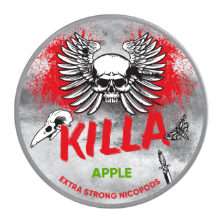 Killa Apple Extra Strong All White snus är tobaksfria nikotinpåsar med smak av äpple. Killa är ett märke inom All White-segmentet med en hög nikotinhalt. De vita portionerna är i formatet Slim och kommer i flera olika smaker.