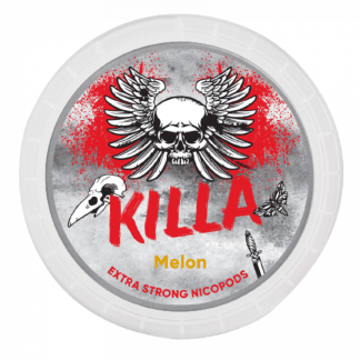 Killa Melon Extra Strong har en tropisk fräschhet av melon med en liten antydan till mynta. Killa är ett märke inom All White-segmentet med en hög nikotinhalt. De vita portionerna är i formatet Slim och kommer i flera olika smaker.