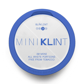 Klint Mini Blåklint har smak av skogsbär och blåbär, samt med en kombination av viol och frukter. Portionerna är i mini format och kommer i en variation av olika smaker och styrkor. Klint Mini Blåklint har styrkan 3, vilket innebär en hög nikotinnivå. Varje prilla har en nikotinhalt på 1,6%, motsvarande 8 mg per prilla.