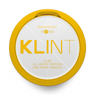 Klint Passionfruit Slim All White har smak av passionsfukt. Portionerna är i slim format och kommer i en variation av olika smaker och styrkor. Klint Passionfruit Slim All White har styrkan 2 , vilket innebär en balanserad nikotinnivå. Varje prilla har en nikotinhalt på 0,8%, motsvarande 5,6 mg per prilla.