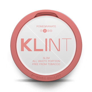 Klint Pomegranate Slim All White har en fräsch smak av moget granatäpple. Portionerna är i slim format och kommer i en variation av olika smaker och styrkor. Klint Pomegranate Slim All White har styrkan 2 , vilket innebär en balanserad nikotinnivå. Varje prilla har en nikotinhalt på 0,8%, motsvarande 5,6 mg per prilla.