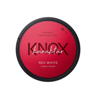 Knox Karaktär Red White har en smakkombination av röda bär och tydlig tobaksnärvaro. Knox Karaktär Red White producerat av Skruf Snus AB. Snuset har en normal styrka med en nikotinhalt på 10 mg per prilla. Knox Portion har 22 prillor och varje prilla väger 0,87 gram.