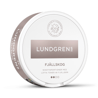 Lundgrens Fjällskog All White snus är tobaksfria nikotinpåsar med smak av fjällbär. Portionerna kommer i normalstort format.