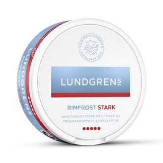 Lundgrens Rimfrost Stark All White snus har en smak av mynta och eukalyptus med en nikotinhalt på 15 mg/g.