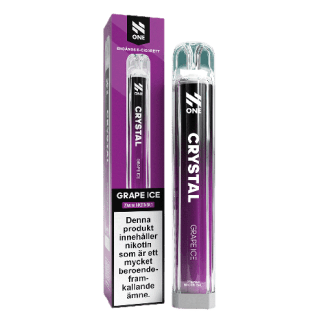 N One Crystal Grape Ice Engångs Vape har smak av vindruvor och nikotinstyrka på 20 mg. N One Crystal Mesh använder sig av mesh-coils vilket ger starkare och långvarig smak med större ångproduktion som påminner mer om större vapes.