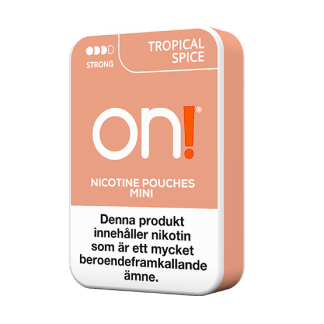 On Tropical Spice 6mg Strong har smak av tropiska frukter. On! är mini nikotinpåsar som kommer i många olika smaker och styrkor.