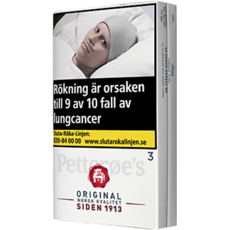 Petteröes Vit 3 Rulltobak med en klassisk ljus tobak. Namnet kommer ursprungligen från en norsk man som hette Halfdan Petterøe, som