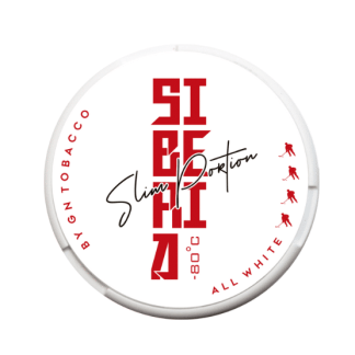 Siberia Slim All White har smak av isande mint. Prillorna har formatet Slim. Siberia Slim All White har nikotinstyrka 5 med 24,7 mg nikotinhalt per prilla, vilket blir en nikotinhalt på 3,3%. Varje prilla väger 0,7 gram och en dosa innehåller 20 stycken prillor. Siberia All White är en tobaksfri produkt som har en stark nikotinstyrka och kommer i olika format.