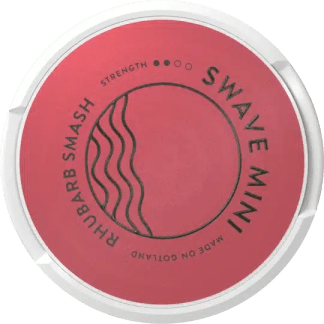 Swave Rhubarb Smash Mini All White snus har smak av rabarber i kombination med en tydlig hallonsmak.