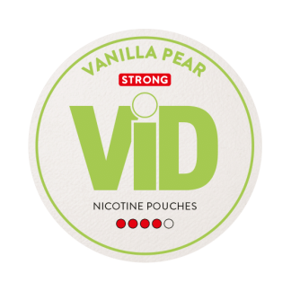 VID Vanilla Pear Strong Slim All White Portion har smak av vanilj och päron. Vid är helt nikotinpåsar utan tobak som kommer i flera olika smaker och styrkor.