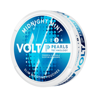 VOLT Pearls Midnight Mint Slim Strong har en smak av pepparmint och mentol. Pearls-teknologin innebär att påsens innehåll har formen av småpärlor. En långsmal fuktig helvit prilla. VOLT är nikotinpåsar utan tobak som kommer i flera smaker och former.