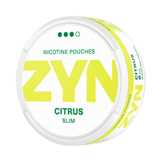 ZYN Citrus Slim Strong har smak av citron, lime och lite apelsinzest. Prillorna har formatet Slim. ZYN Citrus Slim Strong har nikotinhalt på 9 mg per prilla, vilket blir en nikotinhalt på 1,1%. Varje prilla väger 0,8 gram och en dosa innehåller 21 stycken prillor.